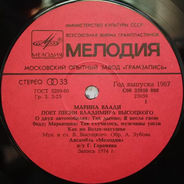 | Artista | Владимир Высоцкий | Marina Vlady |