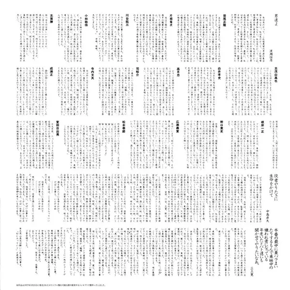 | Arranged By Ryuichi Sakamoto | Lyrics By, Music By Mikami Kan | Vocals [冷かし] 渡瀬恒彦 | Vocals [唄(一)] 小林稔侍 | Vocals [唄(三)] 寺内文夫 | Vocals [唄(二)] 白井孝史 | Vocals [唄(五)] 広瀬義宣 | Vocals [唄(六)] 片桐竜次 | Vocals [唄(四)] 高月忠 | |||
