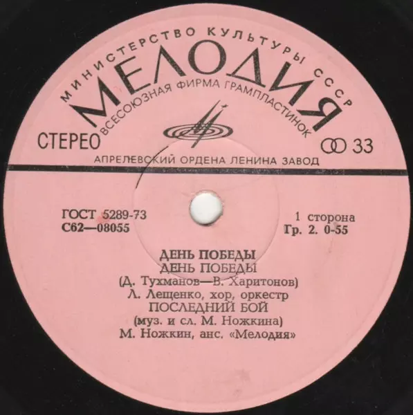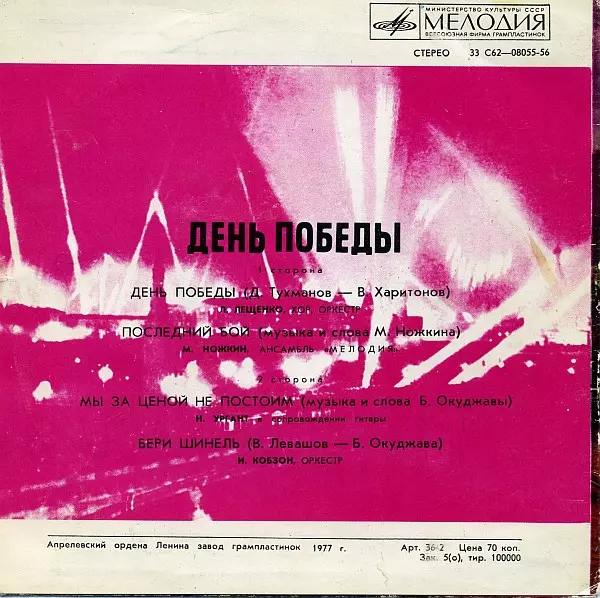 | Chorus Unknown Artist | Lyrics By Владимир Харитонов | Music By Давид Тухманов | Orchestra Unknown Artist | |||