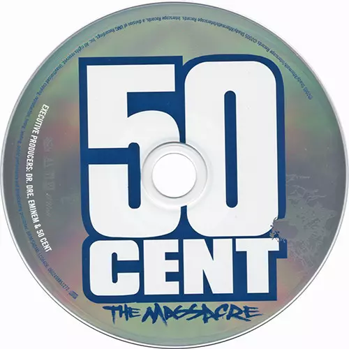 50 Cent: The Massacre versión en CD en estándar edición. Esta edición en concreto se lanzó en Europa en la editorial Shady Records en colaboración con Aftermath Entertainment, Interscope Records, Violator Records y G Unit el día 22. noviembre 2005.