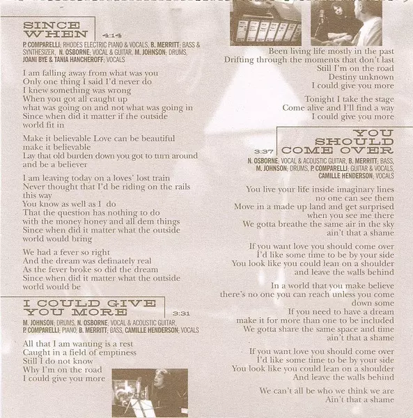 Acoustic Guitar Neil Osborne | Bass Brad Merritt | Drums Matt Johnson (8) | Piano Phil Comparelli | Vocals Camille Henderson, Neil Osborne