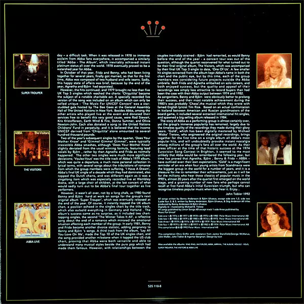 First released in 1992, ABBA Gold is now the group's most commercially successful album. To date, the album has sold more than 31 million copies worldwide.Reviews"... From 1974's winning track "Waterloo" to "Knowing Me, Knowing You", "Money,Money, Money", "Dancing Queen", "Take A Chance On Me&quo...