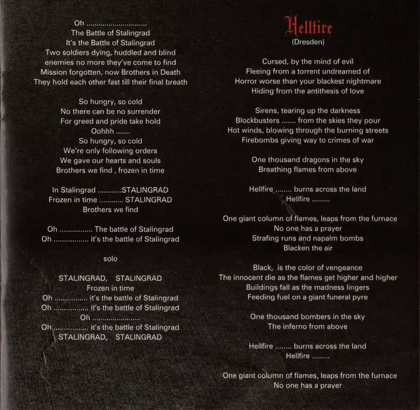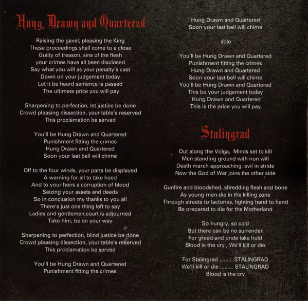 While they have circled the globe twice during this busy time, Wolf Hoffmann and co. still found the time and the muse to write a new album. The pressure is immense, but we know - ACCEPT the love and seek the challenges! No road is too far, no sacrifice too great for the perfect album, for the perfect show. And here is "Stalingrad" - a statement of unconditional will to win. Songs that were written in the sweat and haze of concert halls and hardened in the fire of the enthusiasm of hundreds of thousands of fans. With "Hung, Drawn And Quartered" and the title track, they enthusiastically open a new chapter in the heavy metal textbook. What other band than ACCEPT can etch themselves into the hearts of their fans with the first three seconds of a record? Grandiose! The thunderous riffs, the Cossack choruses, the gifted, classically inspired solos, the catchy choruses and the typical harsh, raspy vocals - the hallmarks of ACCEPT are more concise than ever on "Stalingrad". Of course, perfectly arranged by none other than star producer Andy Sneap (Megadeth, Exodus, Arch Enemy, Nevermore, Hell). Followed by the massive "Hellfire", the fast-paced "Flash To Bang Time", the stadium anthem "Shadow Soldiers" marching with big choruses, the fast-paced "Revolution"... One hit follows another! When you close your eyes, you can already feel the inimitable mixture of skin, sweat and euphoria. That's what heavy metal tastes like! Riff roller 'Against The World'! Autobiographical? Who could blame the band. Twist Of Fate' - tension, atmosphere... Goosebumps! "There are two kinds of people - 'The Quick and the Dead'!" This chorus will bite hard into your eardrums. For days! And the epic finale of "The Galley" with its insane solos makes the decision easy - REPEAT! "Stalingrad" is neither a product of an easy muse nor the work of set rockers marked by ageism. This disc will knock the air out of your lungs, conjure up sweat on your brow and hold a clenched fist under your nose. Perhaps the world's best riff forge contrasts perfectly with the magical solos from Wolf's pen, laced with classical music quotes. This harmony of opposites is the most important "heavy metal patent" that ACCEPT can claim, next to Cossack choirs and guitar ballet. With the song "Stalingrad", perhaps the most important classical heavy metal band in the world has not only a future, but also the stages of major festivals! ACCEPT that!(nuclearblast. de) Review "From zero to a thousand instantly ruthlessly riveting - with everything an Accept fan loves!" Rock It, Andreas Schöwe's "Stalingrad" is already in the running for the title of "Metal Album of the Year". RCN , J. A. ""Blood Of The Nations" was the metal album of 2010. "Stalingrad" is its worthy successor!" ROCK HARD, Götz Kühnemund "The second album of the new Accept era is by no means playing Russian roulette. "Stalingrad" reconciles "Teutonic terror" with anthemic Russian melodies in Wolf Hoffmann's gifted string playing and the band's signature Cossack choruses." LEGACY, Björn Thorsten Jaschinski "Typical Accept, yet never dusty: with "Stalingrad" the veterans show the newcomers how to write the upcoming classics!" HEAVY, Martin Römpp , "Hard riffs are presented in conjunction with remarkable melodies, alongside Tornillo's distinctive voice there are catchy choruses that carry the choruses. Nothing sounds routinely hackneyed, but fresh and with no real weaknesses." (Good Times, June/July 2012)