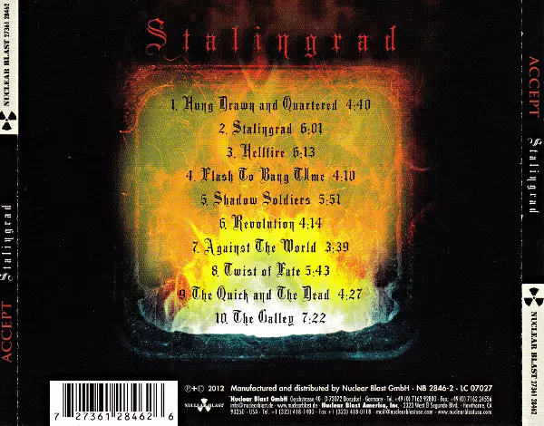 Accept: Stalingrad (Brothers In Death) versión en CD en estándar edición. Esta edición en concreto se lanzó en Europa en la editorial Nuclear Blast el día 9. abril 2012.