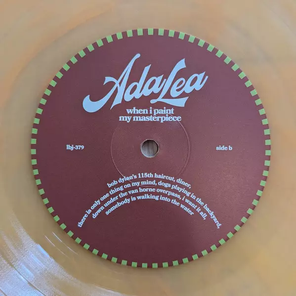 Ada Lea: When I Paint My Masterpiece CLR | LTD versión en vinilo LP en en color de edición limitada edición. Esta edición en concreto se lanzó en EE.UU. en la editorial Saddle Creek el día 8. agosto 2025. Álbum abarca todos los géneros Rock, Pop, Folk, World, & Country y Indie Rock.