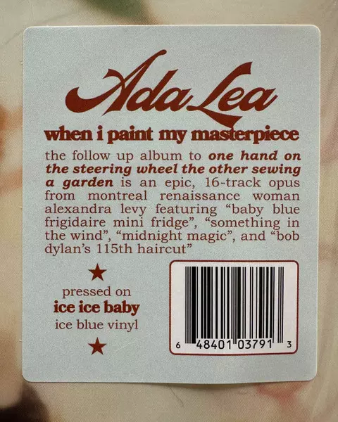 Ada Lea: When I Paint My Masterpiece CLR versión en vinilo LP en en color edición. Esta edición en concreto se lanzó en EE.UU. en la editorial Saddle Creek el día 8. agosto 2025. Álbum abarca todos los géneros Rock, Pop, Folk, World, & Country y Indie Rock.