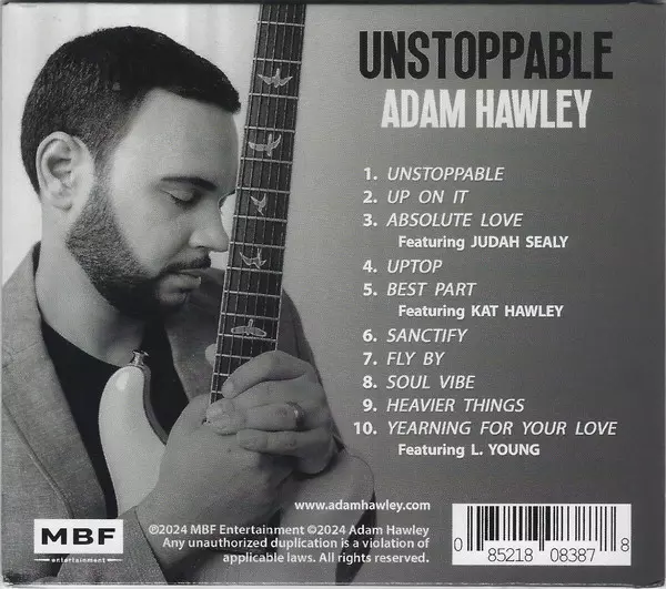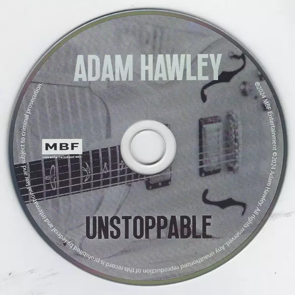 Adam Hawley: Unstoppable versión en CD en estándar edición. Esta edición en concreto se lanzó en EE.UU. en la editorial MBF Entertainment el día 22. marzo 2024. Álbum abarca todos los géneros Jazz y Contemporary Jazz.