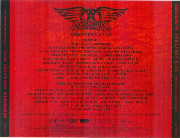 Aerosmith: Greatest Hits + Live Collection versión en 2CD en estándar edición. Esta edición en concreto se lanzó en Japón en la editorial Universal Music Enterprises el día 25. agosto 2023.
