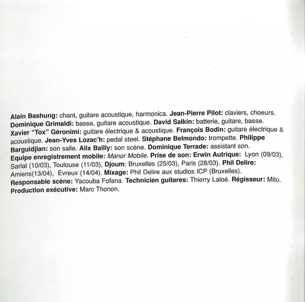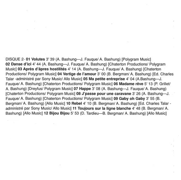 Alain Bashung: Confessions Publiques versión en 2CD en estándar edición. Esta edición en concreto se lanzó en Francia en la editorial Barclay el día 14. noviembre 1995. Álbum abarca todos los géneros Rock, Pop y Chanson.