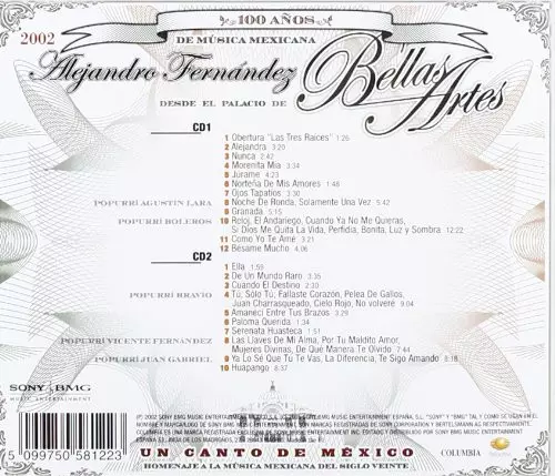 | Título | Un Canto De México - Homenaje A La Música Mexicana Del Siglo Veinte (Alejandro Fernández Desde El Palacio De Bellas Artes - En Vivo - 2002) |