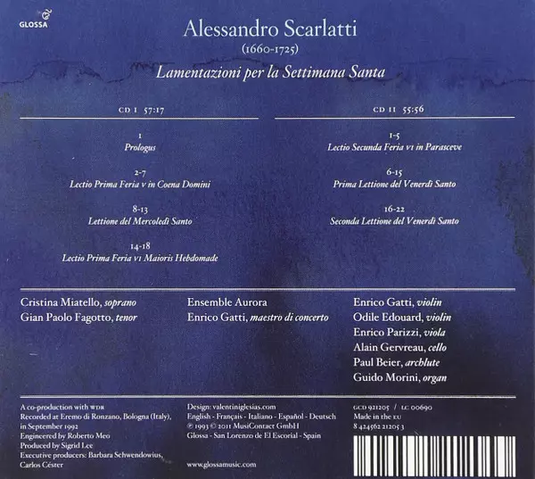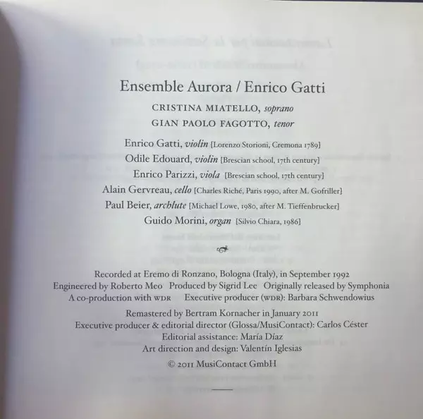 | Artista | Alessandro Scarlatti | Enrico Gatti | Ensemble Aurora | Gian Paolo Fagotto | Cristina Miatello |