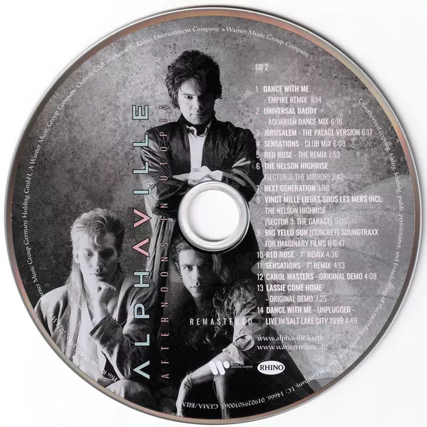 Alphaville: Afternoons In Utopia DLX versión en 2CD en deluxe remasterizado edición. Esta edición en concreto se lanzó en Europa en la editorial Warner Music Central Europe en colaboración con Rhino Records (2) el día 14. mayo 2021.