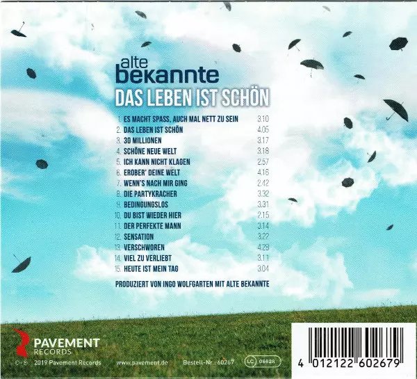 Alte Bekannte: Das Leben Ist Schön versión en CD en estándar edición. Esta edición en concreto se lanzó en Alemania en la editorial Pavement Records el día 5. julio 2019. Álbum abarca todos los géneros Pop y Vocal.