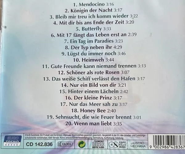 Amigos: 20 Unvergessene Schlagerhits versión en CD en estándar edición. Esta edición en concreto se lanzó en Alemania en la editorial Eurotrend el día 1. mayo 2020. Álbum abarca todos los géneros Pop y Schlager.