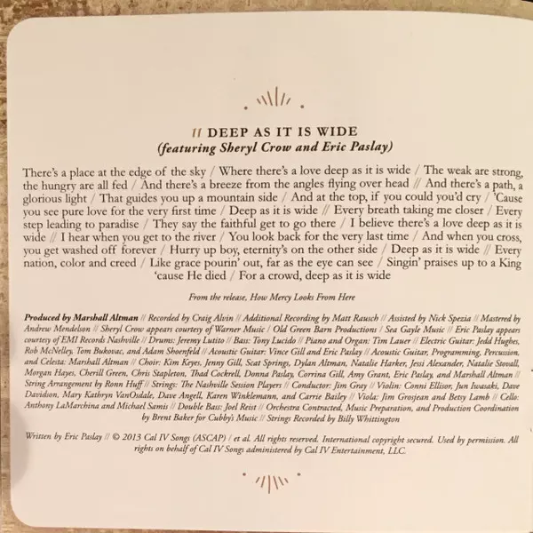 | Editorial | Amy Grant Productions | Capitol CMG Label Group | Sparrow Records |