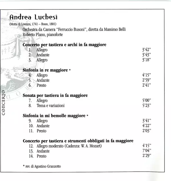 | Artista | Andrea Lucchesi | Massimo Belli | Nuova Orchestra Da Camera Ferruccio Busoni | Roberto Plano |