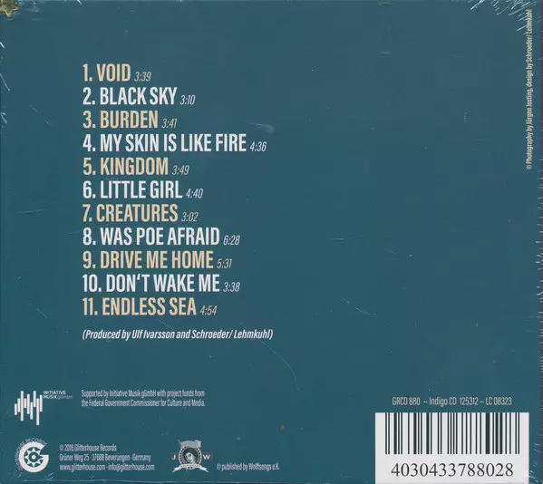 Andrea Schroeder: Void versión en CD en estándar edición. Esta edición en concreto se lanzó en Alemania en la editorial Glitterhouse Records en colaboración con Indigo (2) el día 26. agosto 2016. Álbum abarca todos los géneros Rock y Alternative rock.