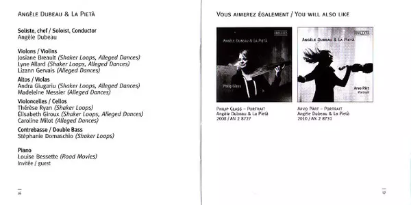 | Artista | John Adams | Angèle Dubeau | La Pietà | Louise Bessette |