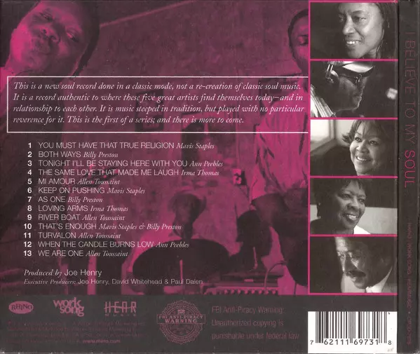 | Artista | Mavis Staples | Ann Peebles | Billy Preston | Allen Toussaint | Irma Thomas |