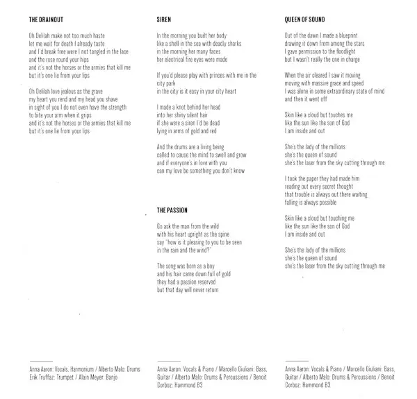 Banjo Alain Meyer | Drums Alberto Malo | Trumpet Erik Truffaz | Vocals, Harmonium Anna Aaron