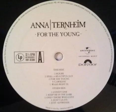 Anna Ternheim: For The Young versión en vinilo LP en estándar edición. Esta edición en concreto se lanzó en Europa en la editorial Universal Music en colaboración con Polydor el día 1. abril 2016. Álbum abarca todos los géneros Folk, World, & Country y Hip Hop.