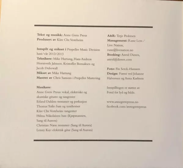 | Artista | Anne Grete Preus |