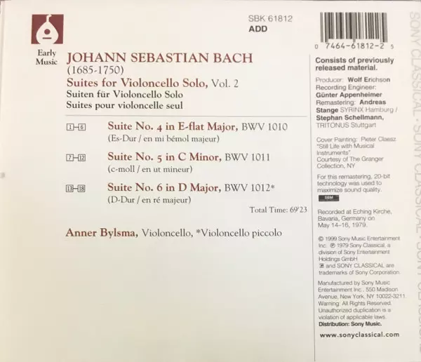 | Artista | Johann Sebastian Bach | Anner Bylsma |