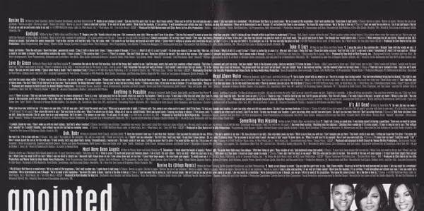 Arranged By [Vocal Arrangements] Anointed, Keith Crouch | Backing Vocals Anointed | Bass, Guitar John "Jubu" Smith | Mixed By Booker T. Jones III | Mixed By [Assisted By] Bill Kinsley, Mike Pandos | Producer, Arranged By, Drums, Drum Programming Keith Crouch | Recorded By Chris Champion, Keith Crouch, Tom Laune | Recorded By [Assisted By] Anthony Irish | Written-By Anointed, John "Jubu" Smith, Keith Crouch, Sherree Ford-Payne