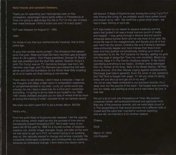 Exactly 30 years ago - on August 21, 1990 - thrash and speed metal icon Anthrax released their fifth album "Persistence Of Time". Anthrax (founded in 1981) have been icons of the world metal scene for years, together with Metallica, Megadeth and Slayer they form the "Big Four". They are considered co-founders and pioneers of the thrash metal sub...