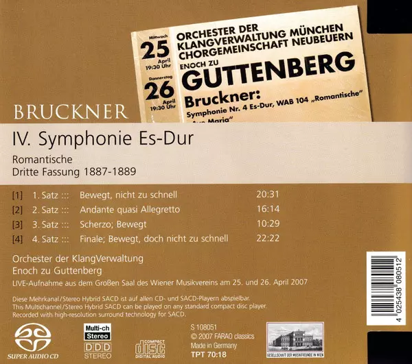 | Artista | Anton Bruckner | Enoch zu Guttenberg | Orchester der KlangVerwaltung |