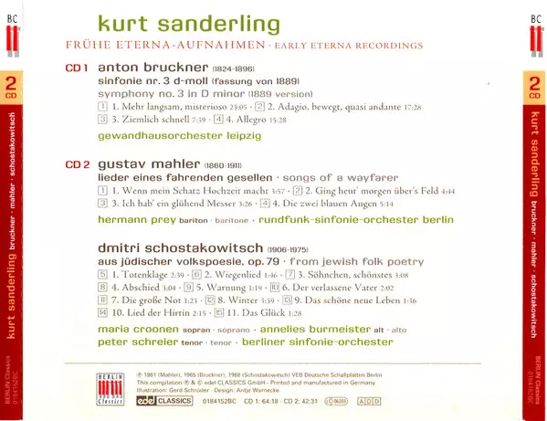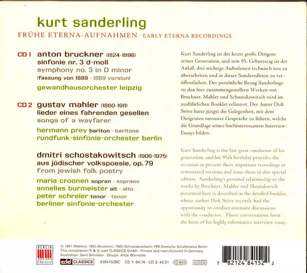 | Título | Kurt Sanderling: Bruckner • Mahler • Shostakowitsch (Frühe Eterna-Aufnahmen • Early Eterna Recordings) |