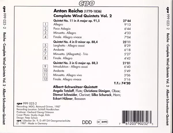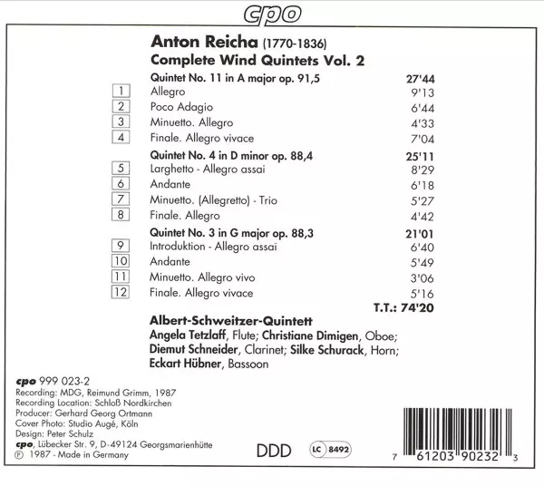 | Artista | Anton Reicha | Albert Schweitzer Quintett |
