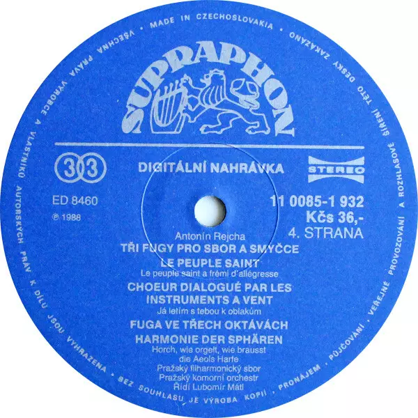 | Artista | Czech Philharmonic Chorus | Prague Chamber Orchestra | Anton Reicha | Lubomír Mátl | Magdaléna Hajóssyová | Vladimír Doležal | Věnceslava Hrubá-Freiberger | Pavel Kamas |