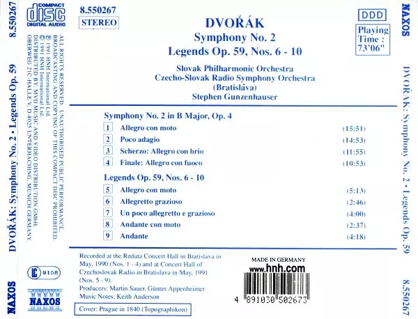 | Artista | Antonín Dvořák | Slovak Philharmonic Orchestra | Stephen Gunzenhauser |