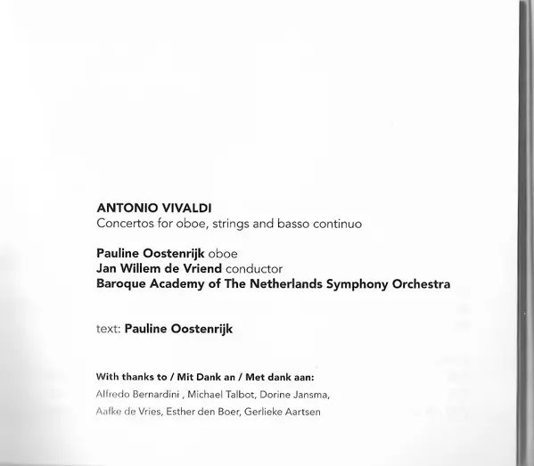| Artista | Antonio Vivaldi | Jan Willem de Vriend | Pauline Oostenrijk | Baroque Academy Of The Netherlands Symphony Orchestra |