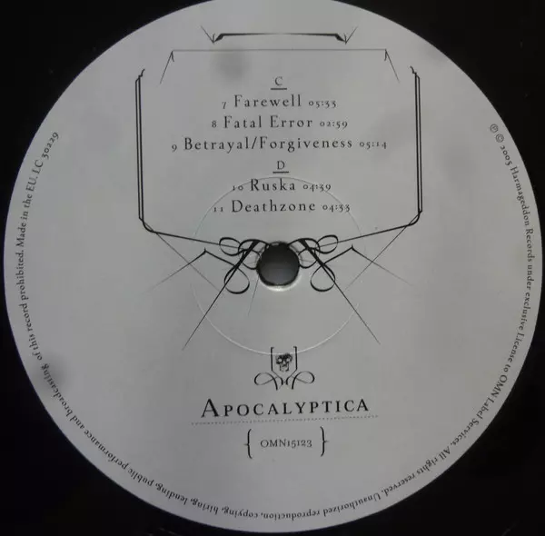11 ukázek jejich vynikajících skladatelských schopností najdete na jejich novém albu "Apocalyptica". První singl "Bittersweet", finský superhvězdný duet s Ville Valem (H.I.M.) a Lauri Ylönenem (The Rasmus), vystřelil hned na vrchol hitparád.