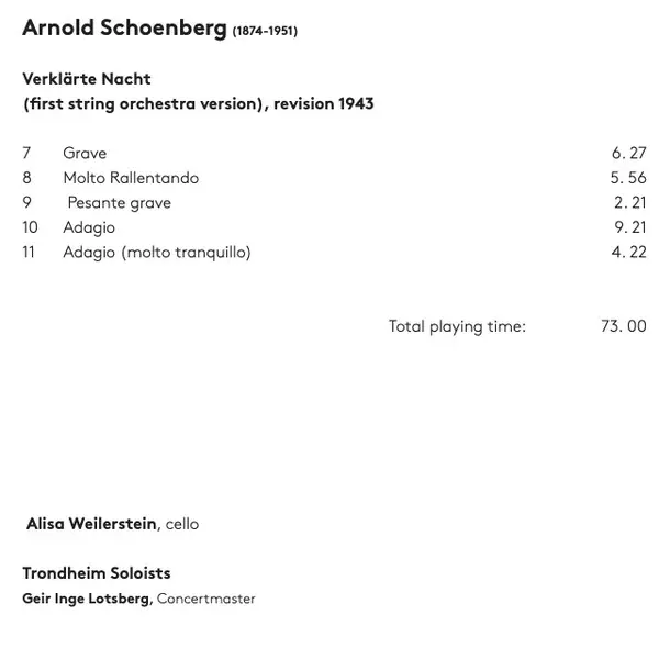 | Artista | Joseph Haydn | Arnold Schoenberg | Trondheimsolistene | Alisa Weilerstein |