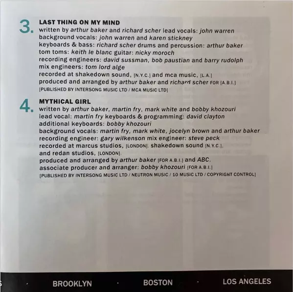 Backing Vocals Arthur Baker, Jocelyn Brown, Mark White, Martin Fry | Co-producer [Associate Producer], Arranged By Bobby Khozouri | Engineer [Mix Engineer] Steve Peck | Engineer [Recording Engineer] Gary Wilkinson | Featuring Martin Fry | Keyboards [Additional Keyboards] Bobby Khozouri | Keyboards, Programmed By Dave Clayton | Lead Vocals Martin Fry | Producer, Arranged By ABC, Arthur Baker | Written-By Arthur Baker, Bobby Khozouri, Mark White, Martin Fry