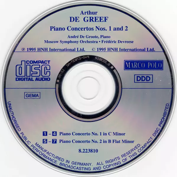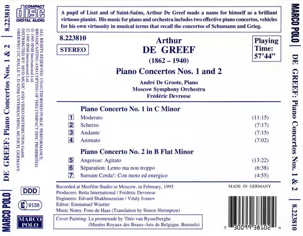 | Artista | The Moscow Symphony Orchestra | Frederik Devreese | Andre De Groote | Arthur De Greef |