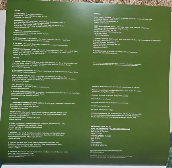 | Engineer Bob Blank | Vocals, Guitar Arthur Russell, Steven Hall | |||