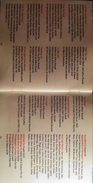 | Producer Bob Blank, Lola Blank | Written-By Arthur Russell, Lola Blank | |||