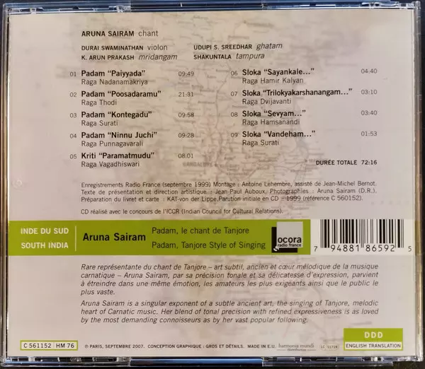 Título | Inde Du Sud: Padam, Le Chant De Tanjore = South India: Padam, Tanjore Style Of Singing |