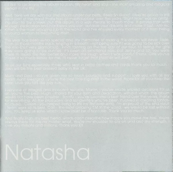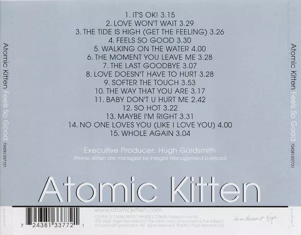 Atomic Kitten: Feels So Good versión en CD en estándar edición. Esta edición en concreto se lanzó en Europa en la editorial Innocent en colaboración con Virgin del año 2002. Álbum abarca todos los géneros Pop, Música electrónica, Balad, Dance-pop, Disco y Europop.