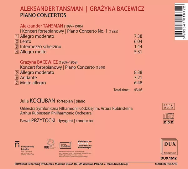 | Artista | Grażyna Bacewicz | Alexandre Tansman | Artur Rubinstein Philharmonic Orchestra | Paweł Przytocki | Julia Kociuban |