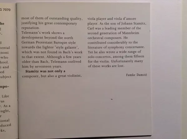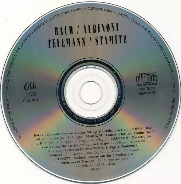| Artista | Johann Sebastian Bach | Tomaso Albinoni | Georg Philipp Telemann | Carl Stamitz |
