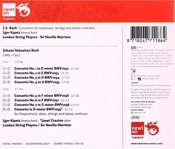| Artista | Johann Sebastian Bach | Sir Neville Marriner | Igor Kipnis | The London Strings |