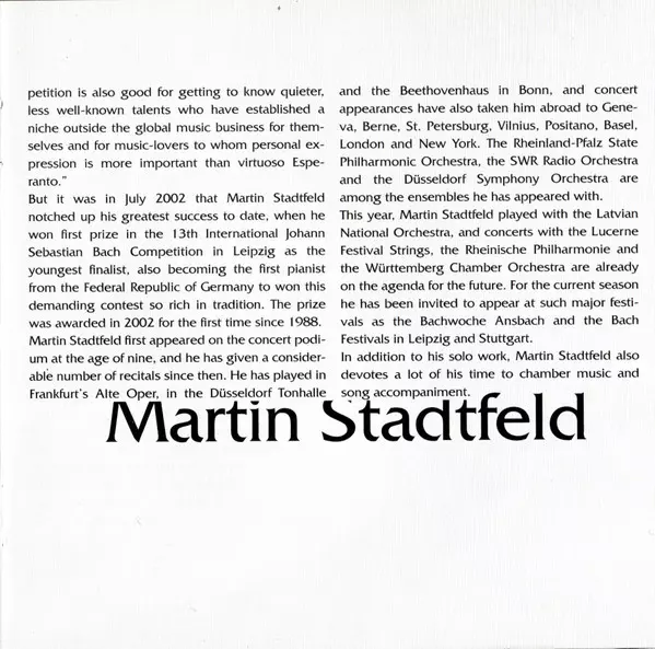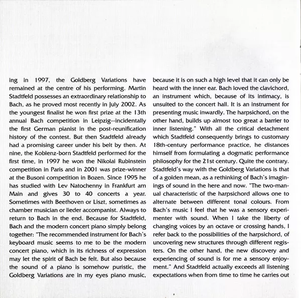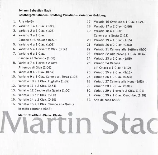 | Artista | Johann Sebastian Bach | Martin Stadtfeld |