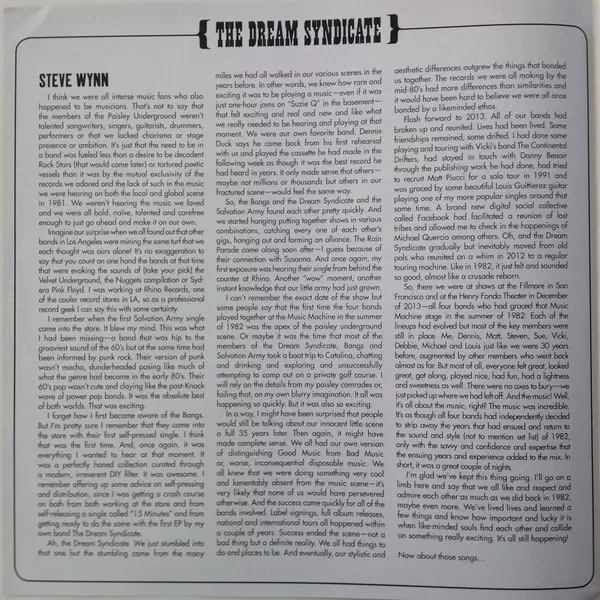 | Backing Vocals Linda Pitmon, Vicki Peterson | Bass Guitar Mark Walton (2) | Drums, Percussion Dennis Duck | Electric Guitar, 12-String Acoustic Guitar, Vocals Jason Victor | Electric Guitar, Lead Vocals Steve Wynn | Mixed By John Agnello | Producer The Dream Syndicate | Recorded By Kevin Jarvis (2) | Recorded By [Additional Recording By] Ted Young | Songwriter Susanna Hoffs, Vicki Peterson | |||