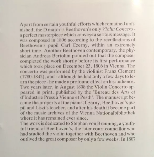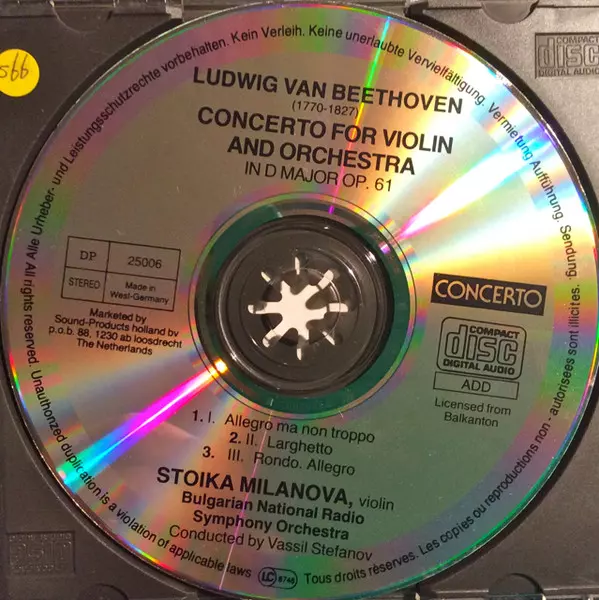 | Concerto For Violin And Orchestra In D Major Op. 61 |
