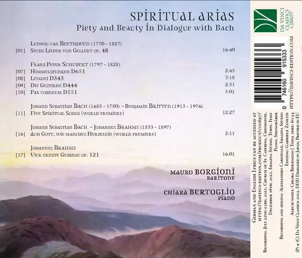 | Artista | Johann Sebastian Bach | Ludwig van Beethoven | Johannes Brahms | Franz Schubert | Benjamin Britten | Chiara Bertoglio | Mauro Borgioni |